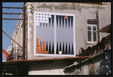the game of Backgammon, "houses" are alternately "built" and opened.
